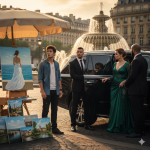 UN PEINTRE DE RUE RETROUVE SON AMOUR D’ENFANCE, MAIS SA VIE EST DIFFÉRENTE PARCE QU’IL EST DANS UNE VOITURE DE LUXE ET QU’IL Y A MÊME DES GARDES DU CORPS