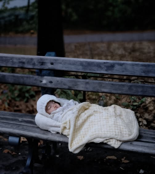 Sur le banc, j’ai d’abord cru voir un tas de vêtements. Mais en m’approchant, la forme a bougé. Un minuscule poing a émergé de la couverture.
